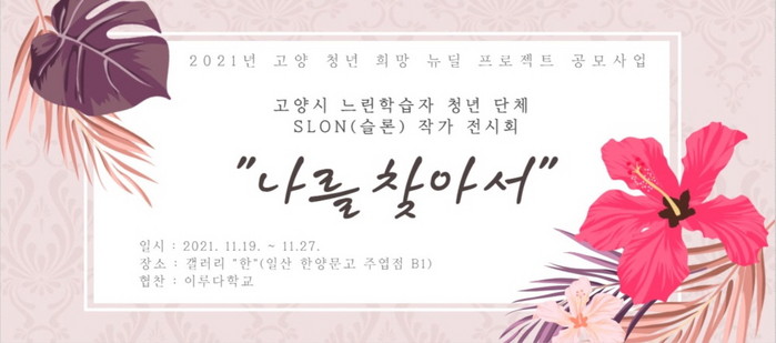 이번 전시를 주관하는 ‘SLON(슬론)’은 느린 학습자 청년들의 행복 증진을 위해 모인 단체이다. 2021년 고양시 청년 희망뉴딜 프로젝트 공모에 선정되어 이번 전시회를 준비했다.