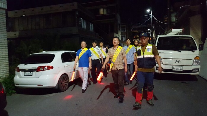 | △ 자율방범대와 4대 사회악 근절 순찰활동을 하고있다. |