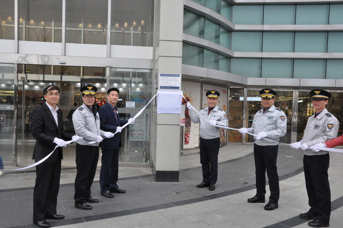 | △광주서부경찰서는 범죄예방환경조성업무협약에 이어서 범죄예방우수시설물에 대하여 인증패 제막식을 수여하였다 |
