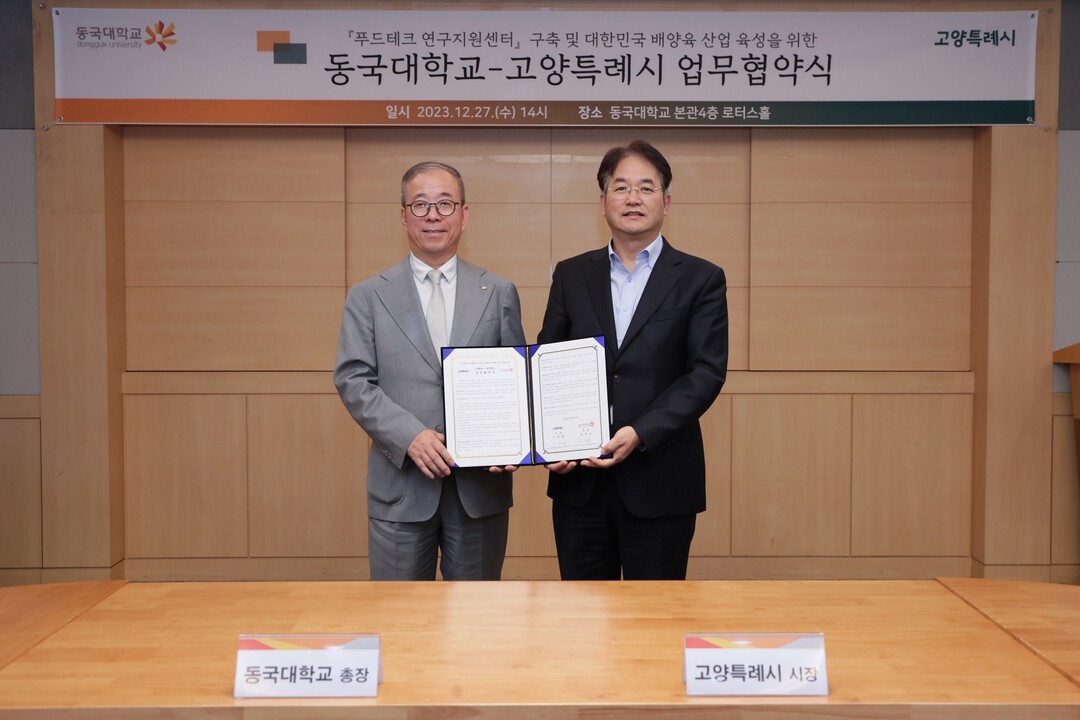 이동환 고양특례시장은 “오늘 동국대학교와의 협약이 고양시뿐만 아니라 대한민국 첨단 식품 기술 산업 전체를 견인하는 데 큰 역할을 할 것”이라며 “바이오 산업과 같은 미래 먹거리 산업을 적극 육성하겠다”라고 전했다.