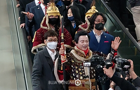 [부자동네타임즈 이교영 기자]허경영 국가혁명당 대통령 후보는 18일 저녁 퇴근시간 대에 김포 경전철 골드라인 노선(김포역-구래역)에 탑승하여 지옥철을 체험하면서 김포는 앞으로 수도권의 중심이 되며 김포를 시발점으로 수도권 환승철도를 계획구상을 밝혔다.