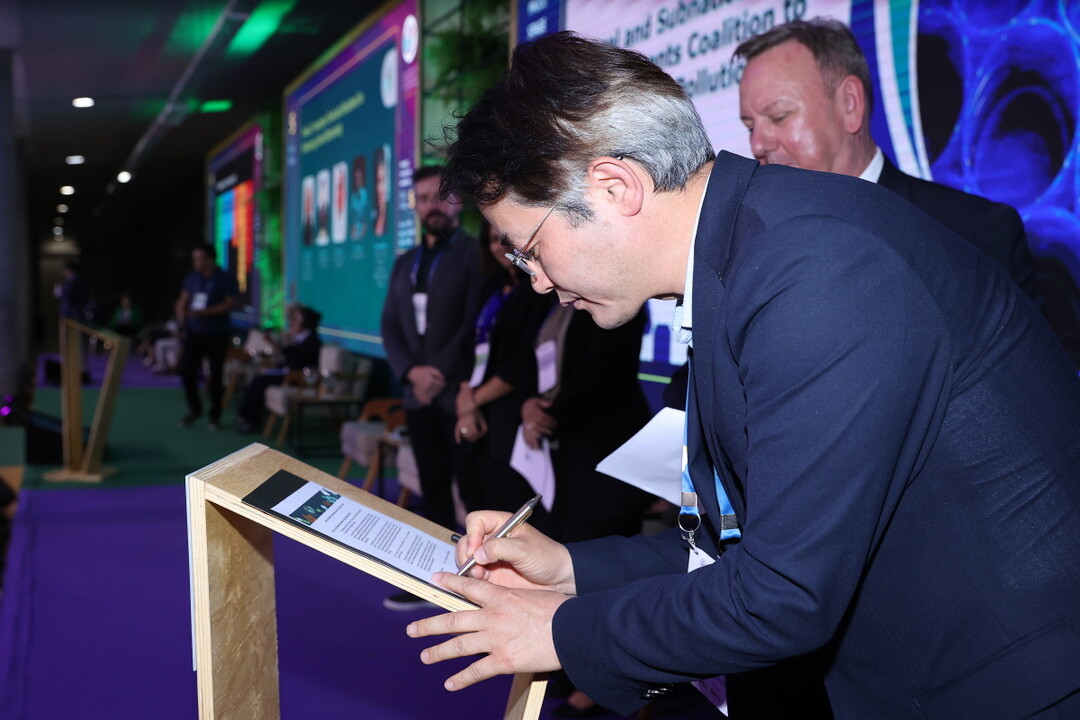 [사진설명] 플라스틱 오염 종식을 위한 글로벌 지방정부 연합 참여에 서명하는 이동환 고양특례시장.