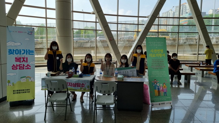 이번 찾아가는 복지상담소는 풍산역에서 운영되었다. 풍산동행정복지센터와 일산종합사회복지관에서는 민·관의 다양한 복지서비스에 대해 상담을 진행했다. 국립암센터 사회사업팀에서는 사전연명의료의향서에 대한 홍보와 사전연명의료의향서 작성을 희망하는 대상자들의 상담을 진행했다.