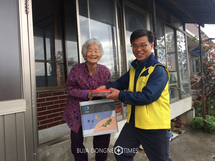 [아산=부자동네타임즈 이현석 기자] 선장면 행복키움추진단은 지난 26일 관내 어려운 독거노인 20가구에 『사랑의 물품나눔사업』으로 식품 선물세트를 전달했다.