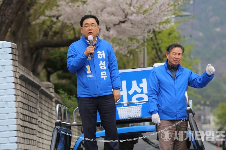 4.10총선이 나흘 앞으로 다가온 가운데  주말 유세전이 한창인 가운데 더불어민주당 허성무 후보가 6일 오후 창원시 성산구 남양장을 찾아 유세를 펼쳤다