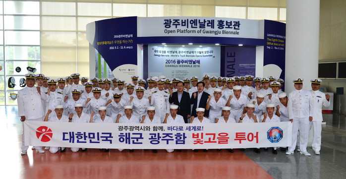 해군 '광주함' 장병 80여 명이 광주권 역사와 문화의 현장인 국립5·18민주묘지와 광주비엔날레 등을 찾았다.