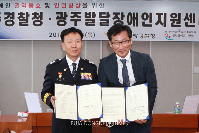 | △광주지방경찰청은 광주지방경찰청 무등홀서 광주발달장애인지원센터와 발달장애인 권리보호 및 인권향상을 위한 업무협약을 체결하였다 |