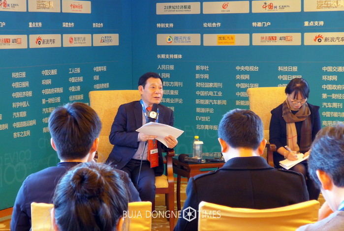 | △중국 전기자동차백인회 초청을 받아 한국대표 자격으로 중국 북경에서 열린 '중국EV100 포럼'에 참석 중인 윤장현 시장은 '글로벌 전기자동차 발전과 정책 원탁회의'에서 각국 참가자들로부터 주목을 받았다 |