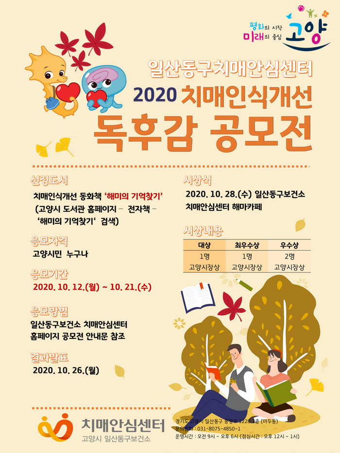 [부자동네타임즈 김인수기자] 고양시는 "일산동구보건소 치매안심센터는 치매에 대한 올바른 이해와 긍정적 인식 조성을 위해 치매인식개선 동화책 ‘해미의 기억찾기’ 독후감 공모전을 개최한다."고 지난 12일 밝혔다.
