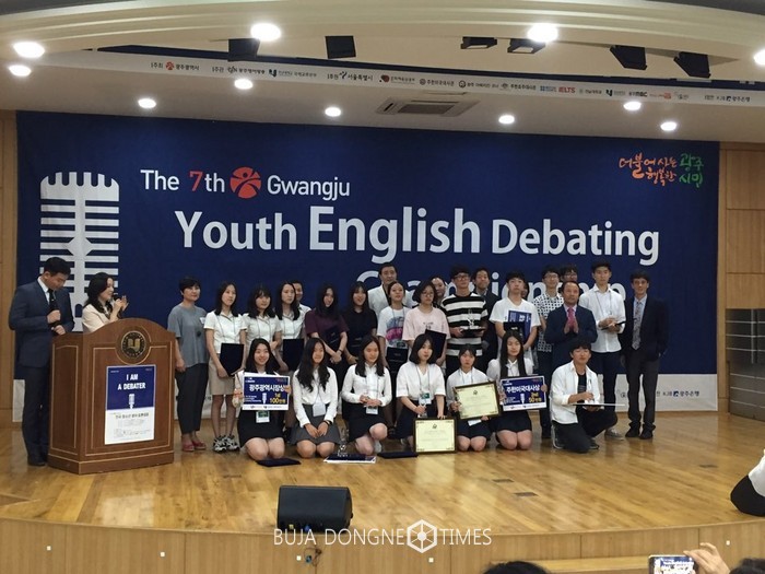 △호남대학교에서 열린 제7회 광주광역시 전국청소년 영어토론대회 고등학생 부문에서 'OLYMPUS(용인외대 부설고등학교 김보아, 김재연, 윤지현)이 우승해 광주광역시장상을 수상했다