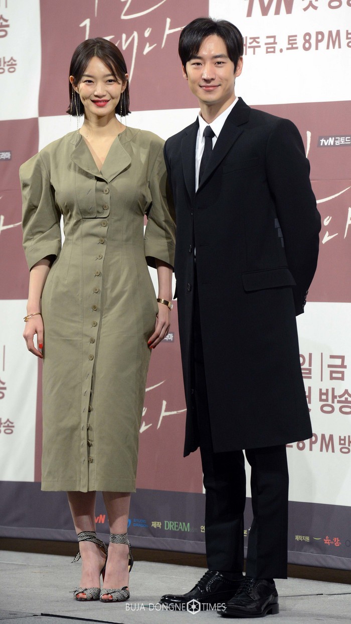 배우 신민아와 이제훈이 23일 오후 서울 강남구 임피리얼 팰리스 호텔에서 열린 tvN 드라마 ‘내일 그대와’ 제작발표회에서 포즈를 취하고 있다. ‘내일 그대와’는 완벽한 스펙의 시간 여행자 유소준(이제훈)과 아내 송마린(신민아)의 로맨스를 그린 작품이다. 2017.01.23.