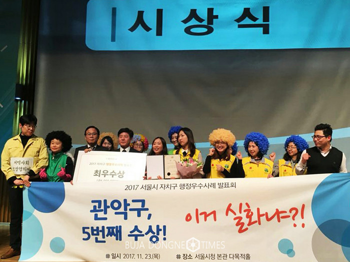 한편, 관악구는 서울시 자치구 우수사례 발표대회에서 다섯 번 본선에 진출하여 다섯 번 모두 최우수상을 수상한 바 있다. 2012년 ‘작은도서관’을 시작으로 ‘175교육지원사업’, 2015년 ‘청년사회적기업지원’, 2016년 ‘365자원봉사도시, 관악’, 올해 ‘옥탑방 전수조사’까지 수상, 모두 2,300만원의 시상금을 획득했다.
