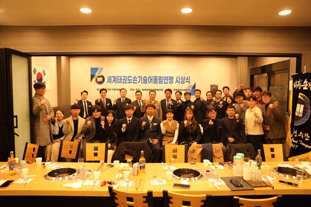 [부자동네타임즈 = 김인수 기자] 지난 18일 세계태권도손기술어울림연맹(회장 엄재영, 이하 태권도어울림)의 시상식과 만찬이 고양시 본부에서 열렸다. 세계태권도손기술어울림연맹은 지난 2017년 실전태권도를 표방하며 설립되고 2022년 고양시에 비영리 법인으로 등록된 단체로 국내 전국조직은 물론, 6개국(미국, 프랑스, 벨기에, 케나다, 독일, 호주)등 해외 조직을 두고 고양시 덕양구 행신동 본부도장에서 매주 지도자들과 함께 열심히 땀 흘리며 수련하고 있다.