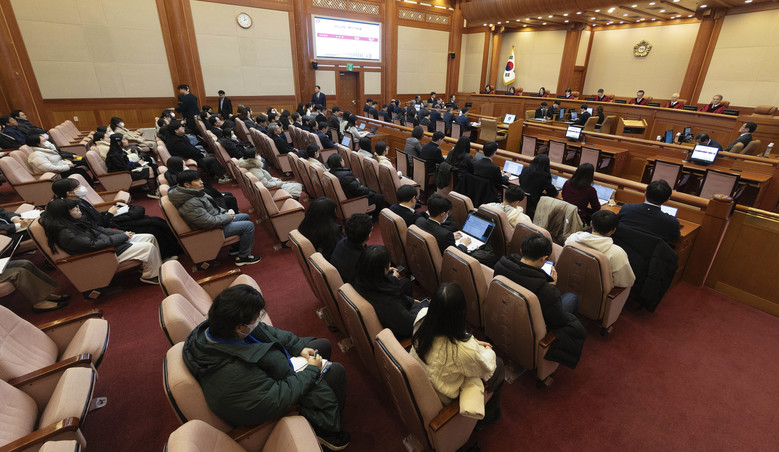 윤석열 대통령 탄핵심판 사건의 첫 변론기일인 14일 오후 서울 종로구 헌법재판소 대심판정에서 첫 변론기일 변론이 진행되고 있다. 2025.1.14 [공동취재]