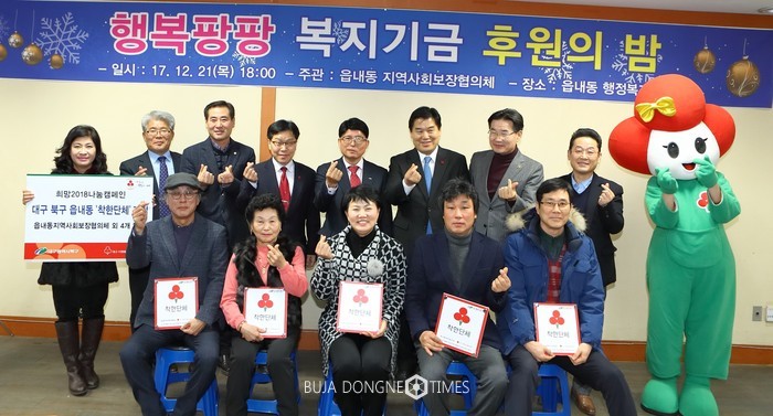 [부자동네타임즈 이의수 기자]대구 북구 읍내동 행정복지센터(동장 임대환)에서는 지역사회보장협의체(위원장 송인식) 주관으로 지난 21일 ‘행복팡팡 복지기금’ 후원자 150여명이 자리한 가운데 후원의 밤 행사를 가졌다.