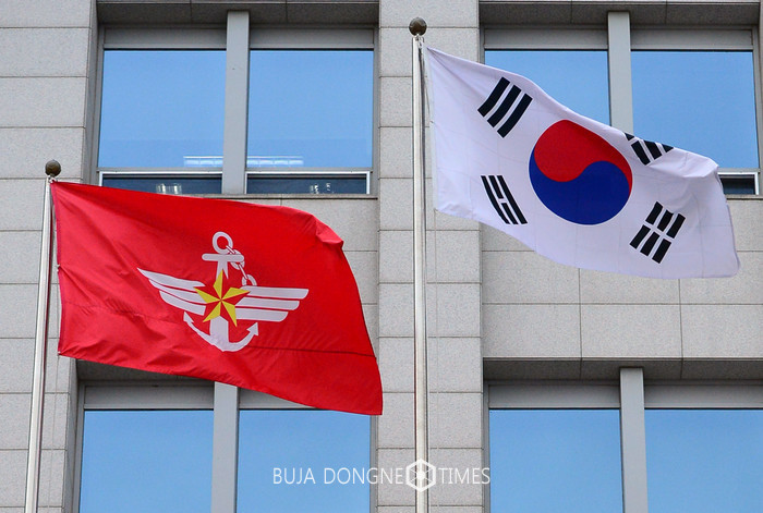 북한이 수소탄 핵실험을 실시해 성공적으로 진행했다고 발표한 6일 오후 서울 용산구 국방부에 걸려있는 깃발이 펄럭이고 있다. 2016.01.06. 사진제공 뉴시스