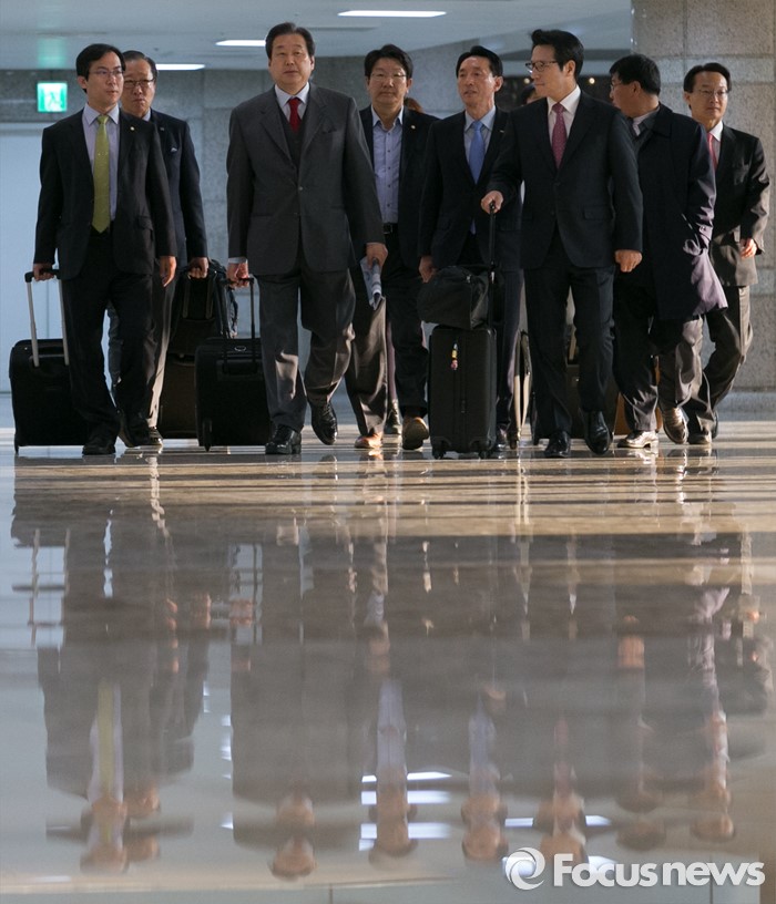 (서울=포커스뉴스) 김무성 새누리당 대표를 비롯한 의원들이 한·일 의원 축구대회에 참석하기 위해 6일 오전 서울 강서구 하늘길 김포공항을 통해 일본으로 출국하고 있다.