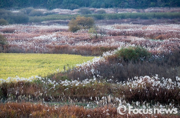 (청주=포커스뉴스) 30일 오전 충북 청주시 문의면 미천리 일대의 황금빛 들녘에 억새풀이 자라나고 있다.