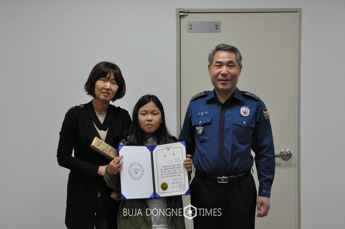 | △광주서부결찰서는 광주광역시 서구 유촌초등학교 정예원학생이 서구 쌍촌동 미소그랑빌 2층에서 화재가 발생한 것을 발견하고 신고, 인명피해를 예방하여 표창을 수여하였다 |