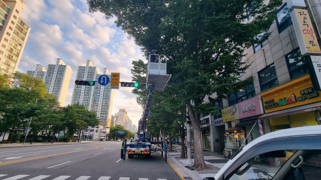 일산서구는 수목 가지가 과도하게 성장해 도로표지판, 교통신호등 가림 등 안전에 위해가 되는 중앙로 은행나무, 호수로 중국단풍, 경의로 느티나무, 덕이 하이파크시티로 대왕참나무 등 주요 노선별 약 190여 주에 대한 전정 작업을 진행했다.