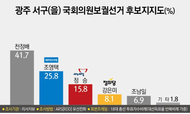 ▲ 광주 서구(을) “천정배(41.7%) vs 조영택(25.8%)”, 천정배 15.9%p 앞서