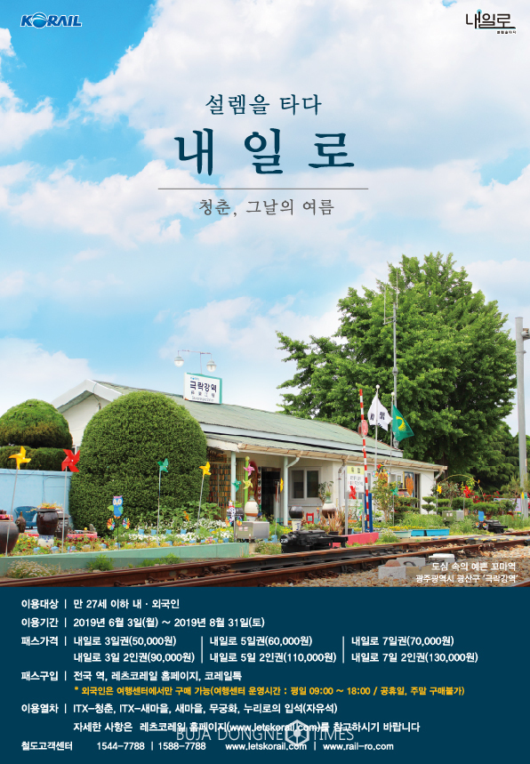 [부자동네타임즈 이언금 기자]코레일이 청춘여행의 상징 ‘2019 하계 내일로패스’(이하 내일로)를 오는 3일부터 8월까지 운영한다.