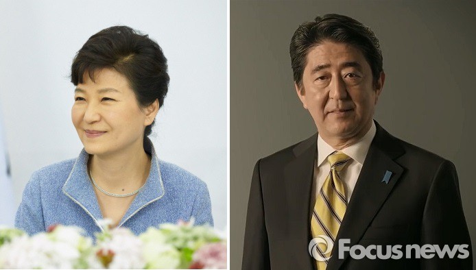 | △ 박근혜 대통령(왼쪽)과 아베 일본총리. 박근혜 대통령은 아베 일본 수상과의 정상회담을 앞두고 서면으로 진행된 일본 마이니치신문(毎日新聞)과의 인터뷰에서 "일본군 위안부 분제는 여성의 인권문제로 일본 정부의 조속한 해결책 제시가 중요하다"는 입장을 밝혔다. <사진=포커스뉴스DB> |