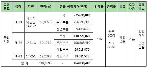 [부자동네타임즈 이채봉 기자] 한국토지주택공사(LH)가 경기 파주 운정신도시 내 복합시설용지 3필지를 일괄 공급한다.