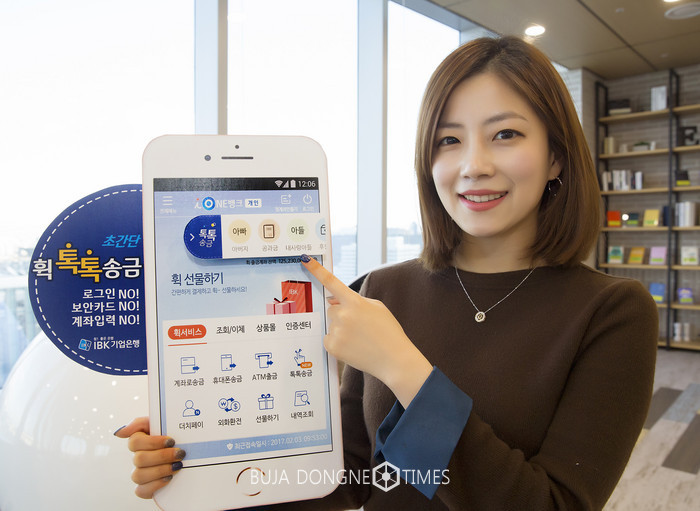 [부자동네타임즈 이현재 기자]IBK기업은행은 모바일뱅킹인 ‘i-ONE뱅크’에서 로그인이나 OTP, 보안카드 없이 본인이 지정한 계좌번호로 송금이 가능한 ‘휙 톡톡송금’ 서비스를 오는 28일 출시한다고 밝혔다.