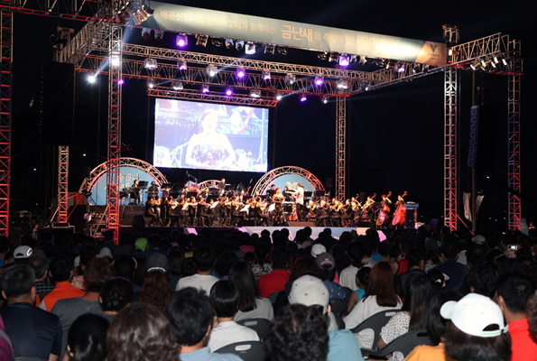△ 지난 8월 한라가 주최한 '배곧신도시 도약과 한라비발디 계약자를 위한 금난새의 해설이 있는 음악회'가 시흥 배곧신도 시 생명공원에서 펼쳐지고 있다. <사진제공=한라> |