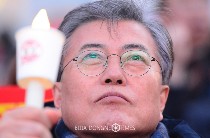 25일 오후 서울 종로구 광화문광장 일대에서 열린 제17차 촛불집회에서 문재인 민주당 전 대표가 촛불을 들고 대통령 탄핵을 촉구하고 있다. 2017.02.25.