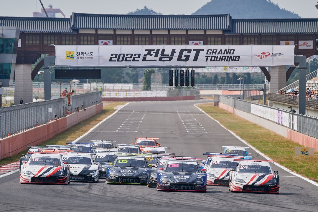 [사진 설명] 2022 전남GT 슈퍼 6000 클래스 차량이 출발하는 모습.