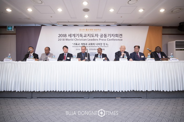 [부자동네타임즈 이세제 기자]기독교지도자연합(Christian Leaders Fellowship, 이하 CLF) 주최로 10월 25일(목) 오후 2시 30분 한국프레스센터 19층 매화홀에서 ‘포스트 종교개혁 500주년, 2018 세계기독교지도자 공동기자회견’이 열렸다.