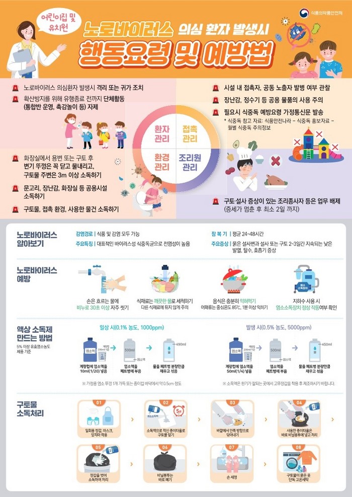 또한 “식중독 환자의 침, 오염된 손을 통해서도 감염될 수 있으므로 특히 어린이집이나 병원 등 집단시설에서는 화장실, 변기, 문 손잡이 등을 수시로 소독해주시기 바란다”고 당부했다.