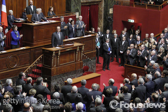 | △ 파리 연쇄 테러 사건 사흘 뒤인 지난달 16일 긴급 소집된 의회에서 프랑수아 올랑드 프랑스 대통령이 연설하고 있다.(Photo by Thierry Chesnot/Getty Images) ⓒ게티이미지/멀티비츠 photo@focus.kr |