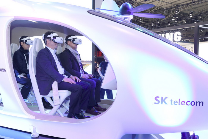 [사진설명] MWC2023 SKT 전시관 UAM 체험.