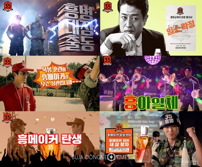 영상은 배우 김성오를 모델로 회식 및 모임 등 다양한 상황에서 흥을 깨거나 흥을 욕심내는 이들을‘35 흥병교육대’에 입소시켜‘흥 메이커’로 만들어낸다는 콘셉트로 제작됐다.