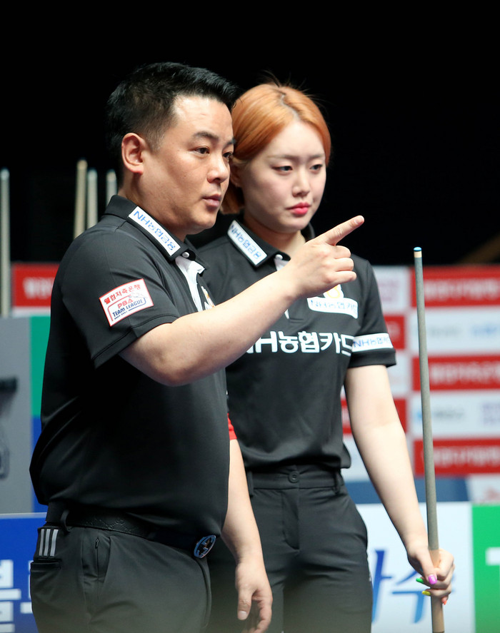 우승 확정 여부로 관심을 모은 경기였지만 NH농협카드의 출발은 좋지 않았다. 1세트 조재호-김현우가 신정주와 무랏 나시 초클루(튀르키예)에 3이닝만에 1:11로 패배하면서 불안하게 출발했다.
