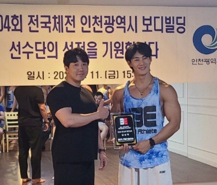 [부자동네타임즈 김인수기자] 지난 11일 인천 구월동 머슬앤피플에서 인천광역시 보디빌딩협회 김남욱선수를 비엠에슬릿 후원선수 발탁하였다.