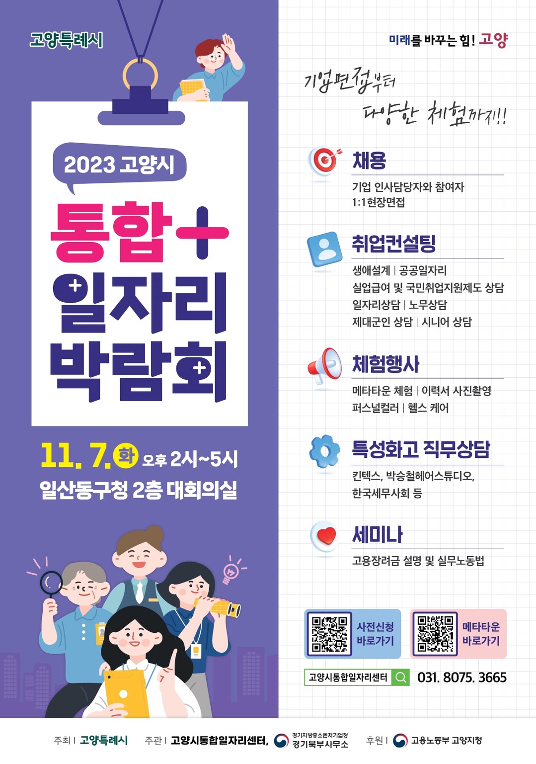 [부자동네타임즈 = 김인수 기자] 우수기업의 인재 채용과 취업자의 구직을 지원하기 위해 ‘2023 고양시 통합일자리박람회’를 11월 7일(수) 일산동구청 대회의실에서 개최한다. 시는 11월 3일까지 참여 기업을 모집할 예정이다.