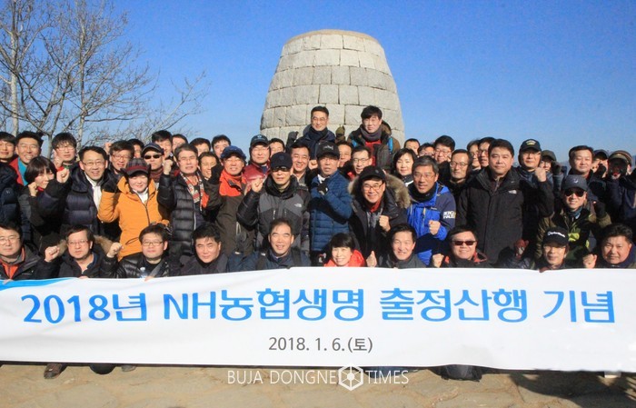 [부자동네타임즈 이현재 기자]NH농협생명 서기봉 사장이 6일(토) 임직원들과 함께 서울 서대문구 안산에서 ‘2018년 출정 산행’을 하며 새해 경영목표 달성을 다짐했다.