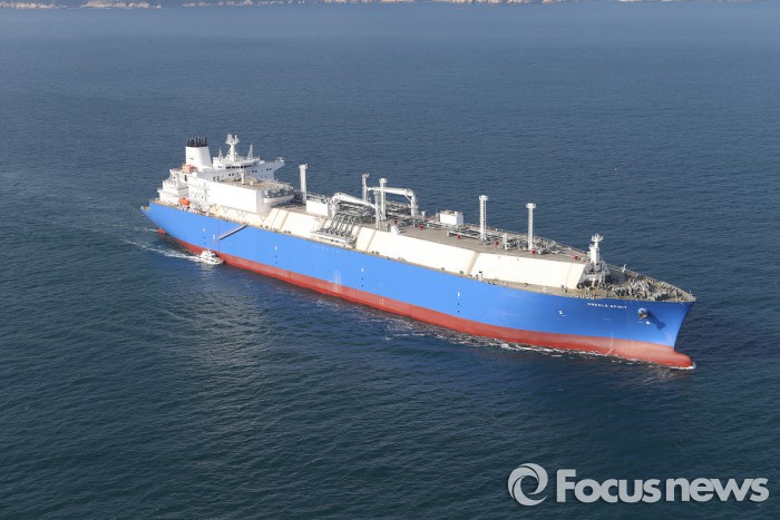 | △ 대우조선해양이 건조한 천연가스 직분사 추진 방식 LNG선이 시운전을 하고 있다. <사진제공=대우조선해양> |