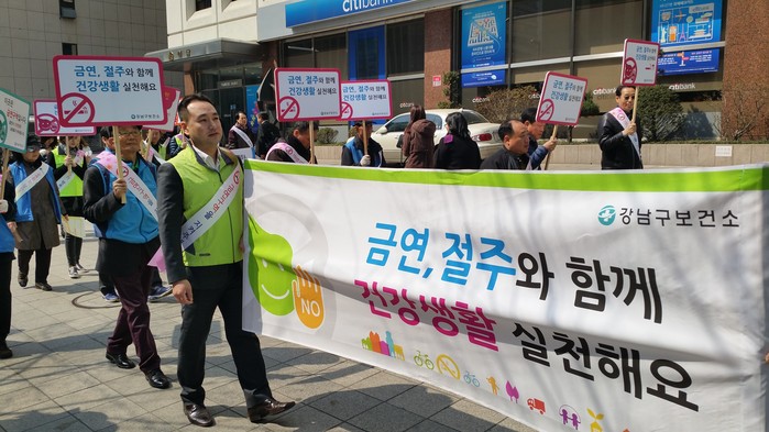 아울러 구는 지난 29일 오후 2시에 강남대로 일대에서 ‘세계 금연의 날’을 기념해 확대된 강남대로 금연구역을 알리기는 ‘금연 캠페인’ 행사를 가졌는데 이날 행사에는 ‘강남스타일 시니어봉사단’회원과 역삼동 지역주민 등