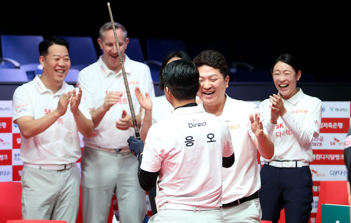 이밖에 이날 열린 다른 경기서는 NH농협카드가 김보미의 2승을 앞세워 블루원리조트를 세트스코어 4:2로 꺾고 2연승을 달렸다. 반면, 블루원리조트는 2연패로 선두 수성에 적신호가 켜졌다. 하이원리조트는 이충복이 2승을 거두는 활약으로 웰컴저축은행과 풀세트 접전 끝에 4:3 승리, 3연패를 벗어났다. 휴온스는 하나카드와의 경기 7세트서 ‘리더’ 최성원이 김병호를 상대로 본인의 팀리그 두 번째 퍼펙트큐를 뽑아내며 4연승을 내달렸다.