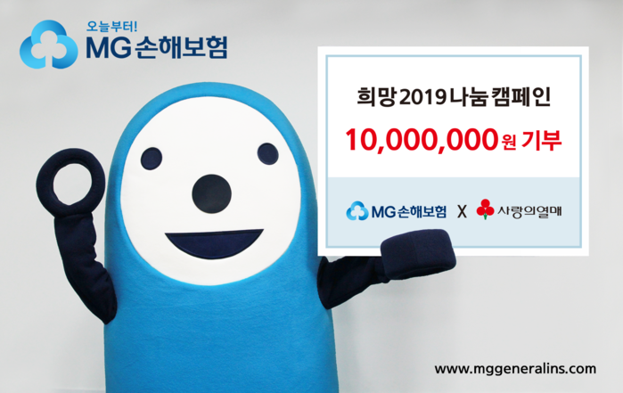 [부자동네타임즈 이현재 기자]MG손해보험(대표이사 김동주, )이 연말을 맞아 28일 ‘희망2019나눔캠페인’에 1천만 원의 성금을 기부했다.