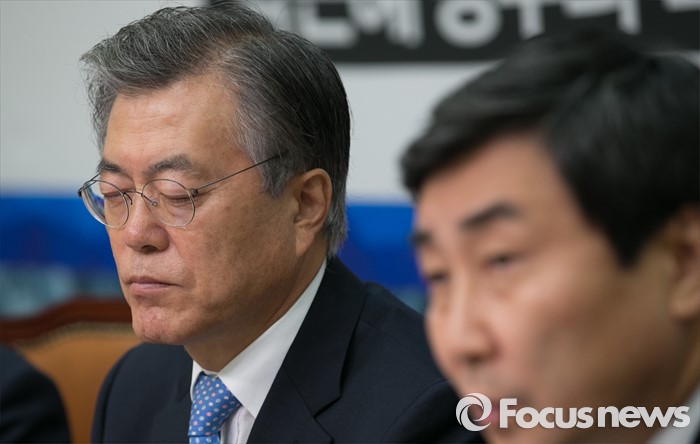 | △ 문재인(왼쪽) 새정치민주연합 대표가 13일 오전 서울 여의도 국회에서 열린 확대간부회의에 참석해 이종걸 원내대표의 모두발언을 들으며 생각에 잠겨 있다. <사진제공=포커스뉴스> 박동욱 기자 fufus@focus.kr |