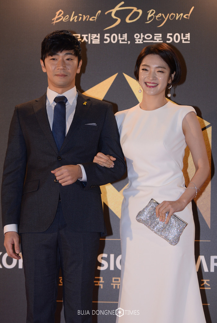 16일 오후 서울 용산구 한남동 블루스퀘어 삼성전자홀에서 열린 제 1회 한국뮤지컬어워즈 레드카펫 행사에서 뮤지컬배우 김시영, 이예은이 포즈를 취하고 있다. 2017.01.16.