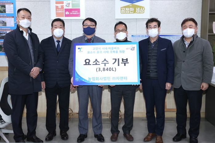 [부자동네타임즈 김인수기자] 고양시 관내 경유 차량을 운행하는 시내·마을버스 운수업체를 위해 농업회사법인 ㈜자연터(대표 박인호)가 지난 24일 요소수 3,840리터를 기부했다.