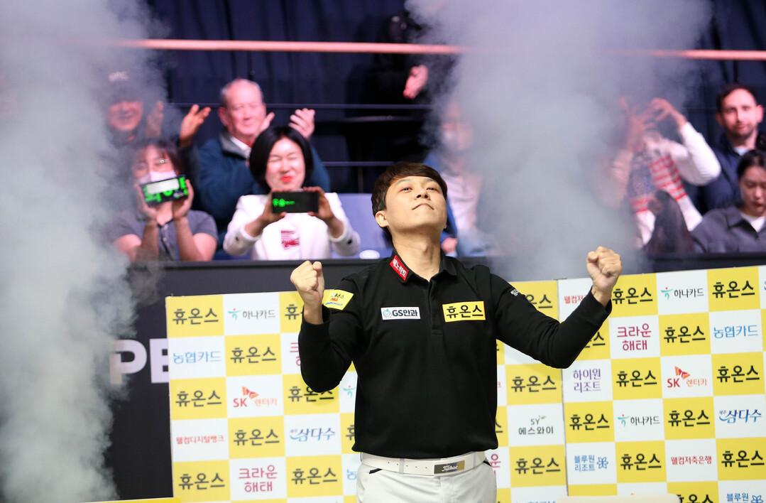 지난 30일 경기도 고양시 ‘고양 킨텍스 PBA 스타디움’에서 열린 프로당구 2023-24시즌 5차전 ‘휴온스 PBA 챔피언십’ 결승서 최성원은 ‘휴온스 동료’ 하비에르 팔라존(스페인·35)을 세트스코어 4:1(15:1, 15:9, 9:15, 15:8, 15:1)로 제압하고 프로통산 첫 우승컵을 들어올렸다.