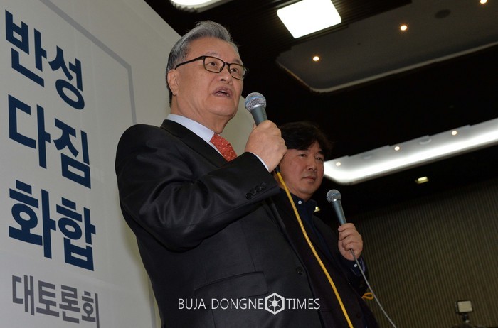 11일 오전 경기 고양시 킨텍스 제2전시장 회의실에서 열린 새누리당 반성·다짐·화합 대토론회에 참석한 인명진 비상대책위원장이 '잘 죽어야 산다'를 주제로 당원과의 대화를 하고 있다. 2017.01.11.